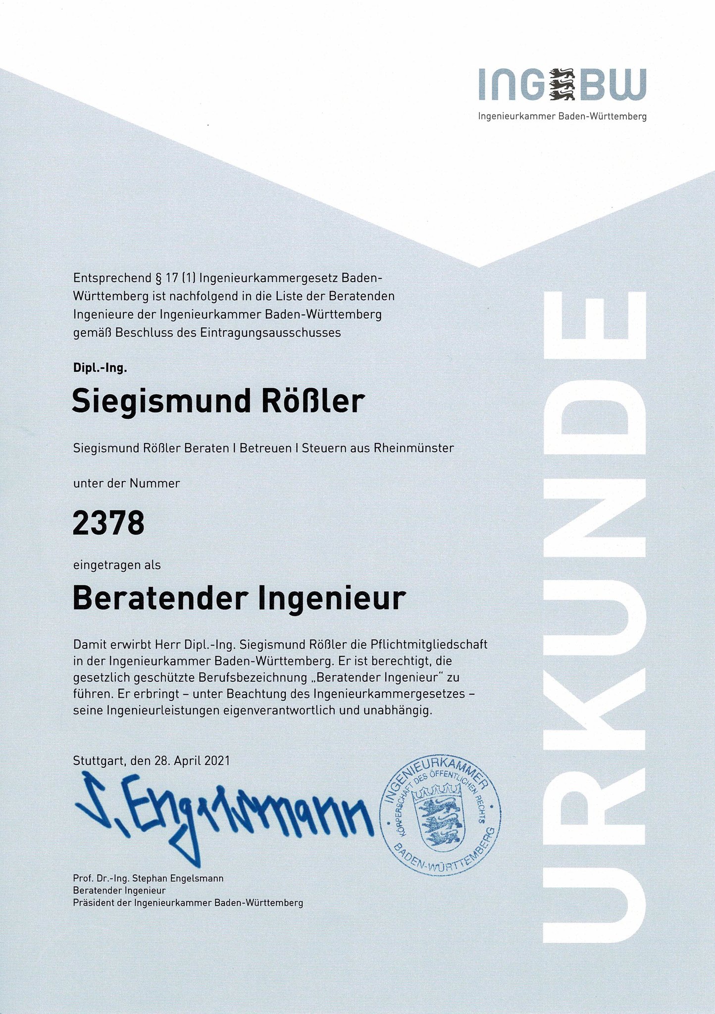 In dieser Funktion stehe ich für eigenverantworliche und unabhängige Beratung, insbesondere bei Entwicklung, Planung, Betreuung, Kontrolle und Prüfung auf den Gebieten des Ingenieurwesens.