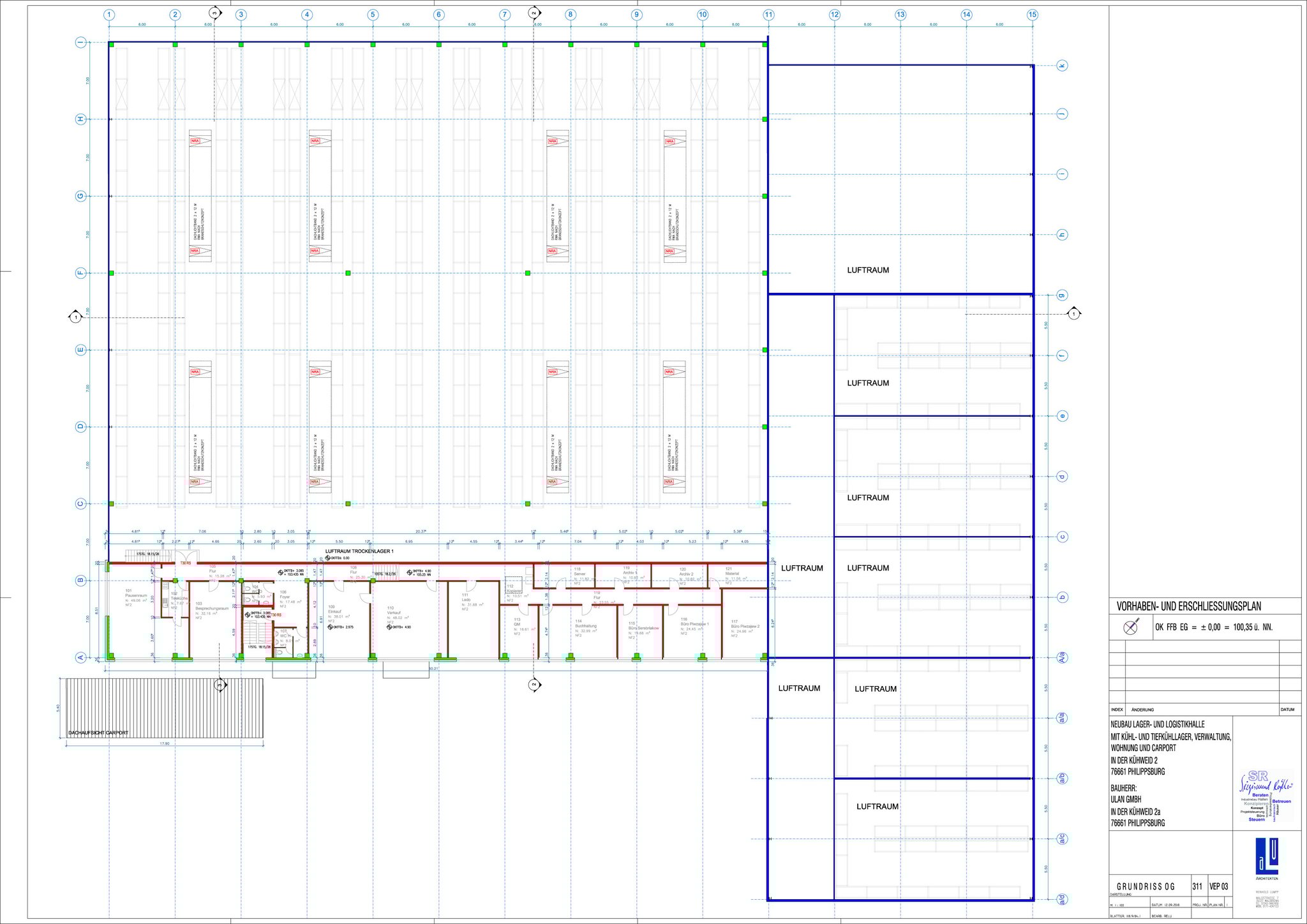 Anbau Lagerhalle mit Überdachung, Überfahrt und Vorsatzschleusen