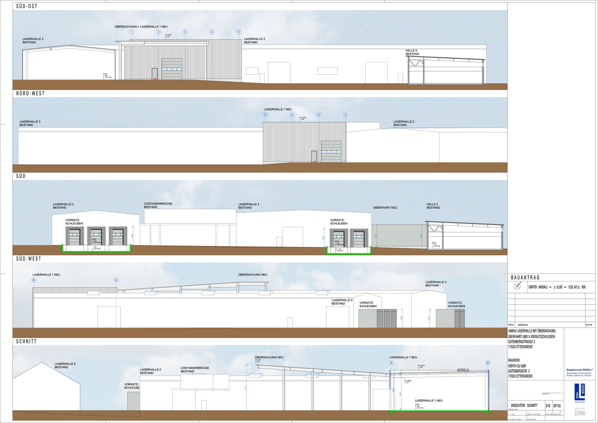 Anbau Lagerhalle mit Überdachung, Überfahrt und 5 Vorsatzschleusen